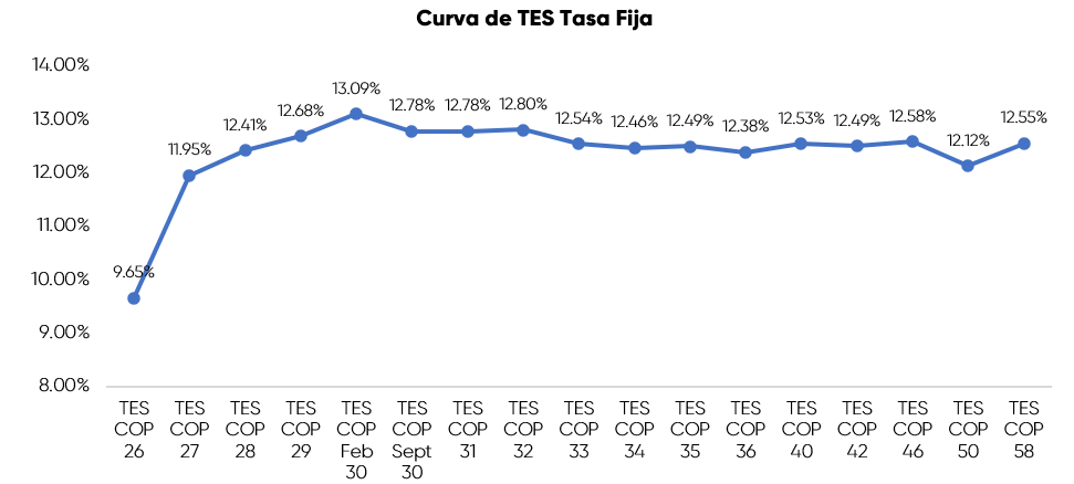 En la jornada anterior, la curva de TES tasa fija en Colombia registró un comportamiento negativo con una desvalorización promedio de 5,4 puntos básicos, sin contar los TES con vencimiento este año, con un volumen de negociación cercano a 2,4 billones de pesos. Por su parte los bonos del Tesoro de Estados Unidos registraron algunas valorizaciones en la jornada tras la nominación del exgobernador de la Reserva Federal Kevin Warsh para dirigir la Reserva Federal.