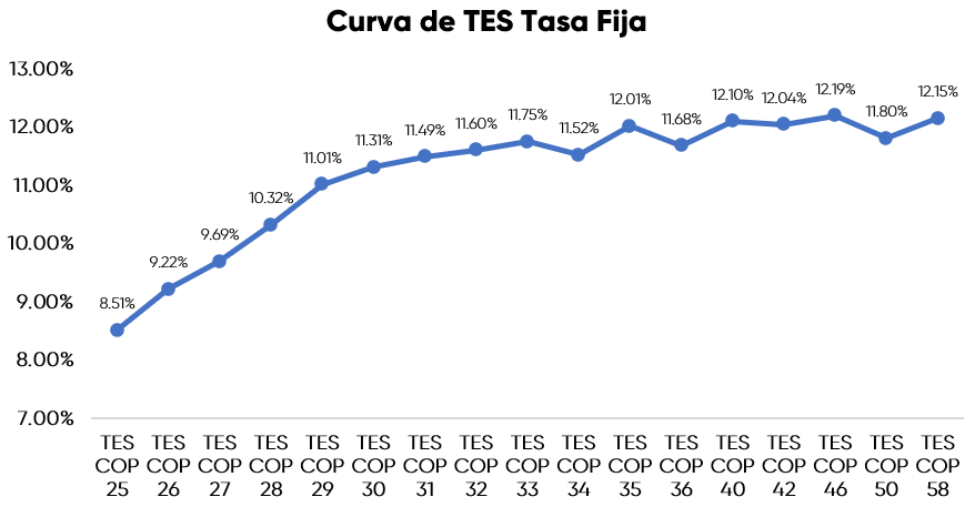 En la jornada anterior, la curva de TES tasa fija en Colombia registró un comportamiento negativo con una desvalorización promedio de 6,3 puntos básicos, con un volumen de negociación cercano a los 2,6 billones de pesos. En el ámbito externo, los bonos del Tesoro de Estados Unidos presentaron desvalorizaciones en la jornada extendiendo su comportamiento tras el discurso de Powell del día anterior que dejó dudas sobre el recorte de tasas en Diciembre.